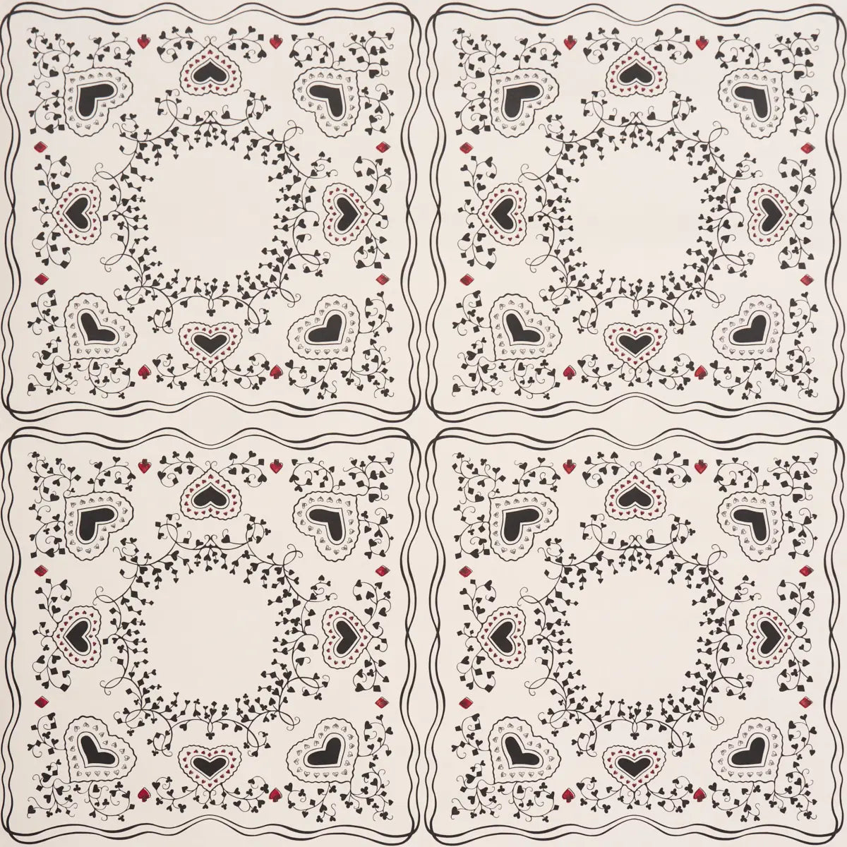 Garden Of Hearts - Black & Ivory - Schumacher 5017860 Wallcovering