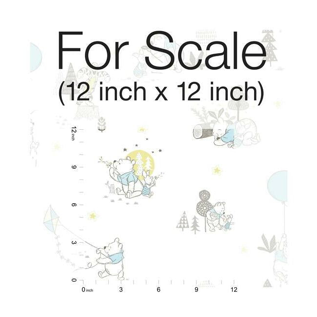 This colorful pattern is sure to add high impact to your kids space. This Disney Winnie the Pooh Playmates Wallpaper measures approximately 20.5 inches wide by 33 feet long, covering About 56.4 square feet per roll. Durable and easy to remove from primed walls, this friendly to hang unpasted nonwoven wallpaper is created with a special blend of synthetic fibers, making it both easy to hang and tear resistant.
