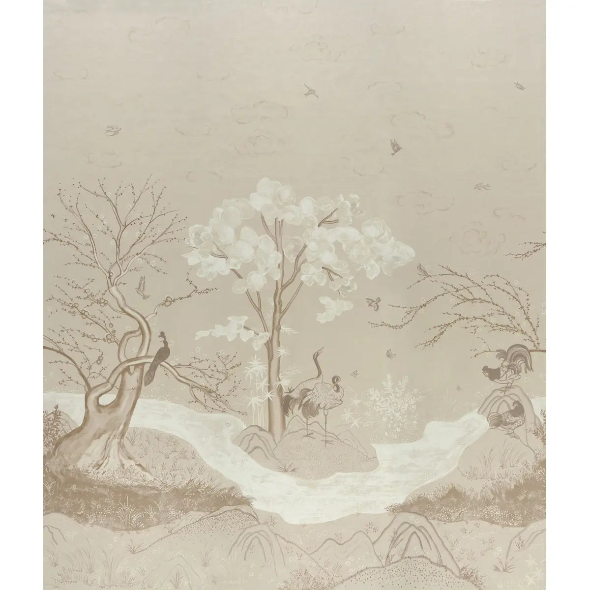 Birdsong 3 Panel Set - Ivory - Schumacher 5017111 Wallcovering